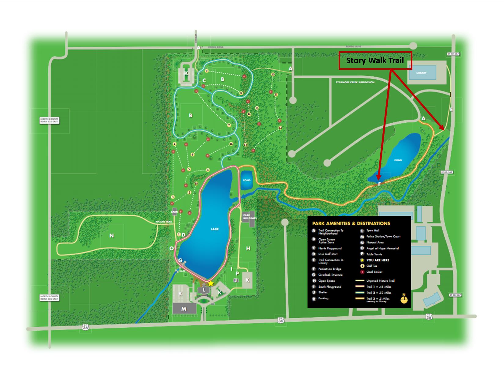 Avon Town Hall Park features 2 miles of paved trails that take you past the 9-acre lake, 4 acres of native Indiana prairie plantings, and many more beautiful sites! For the safety of trail users, motorized vehicles, except for those used for accessibility purposes are prohibited. Leashed pets are permitted. Pet waste pickup is required, and waste stations are conveniently located along the trails. View a full-color trail map (PDF).